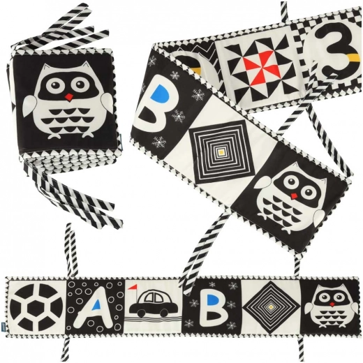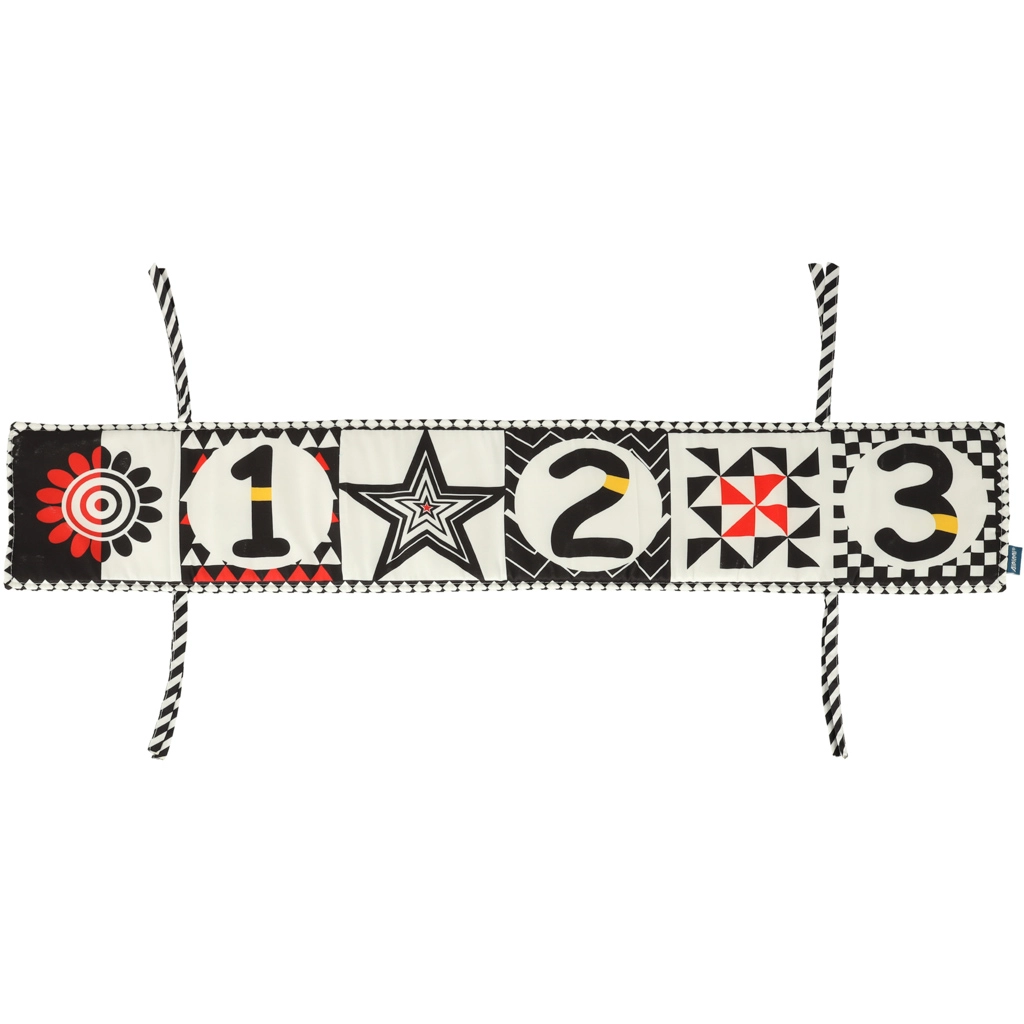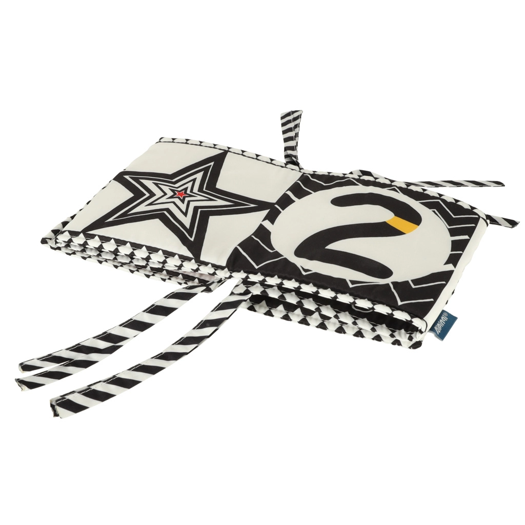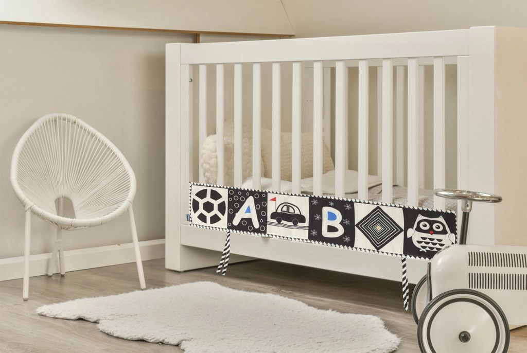 Открийте света на формите и цветовете с тази магична текстилна книжка, която няма да спре да очарова най-малките. Предлага до 12 различни контрастни шарки и може да се закрепи към креватчето с връзки като защитен борд. Тя е перфектно допълнение за безопасността и развитието на децата.