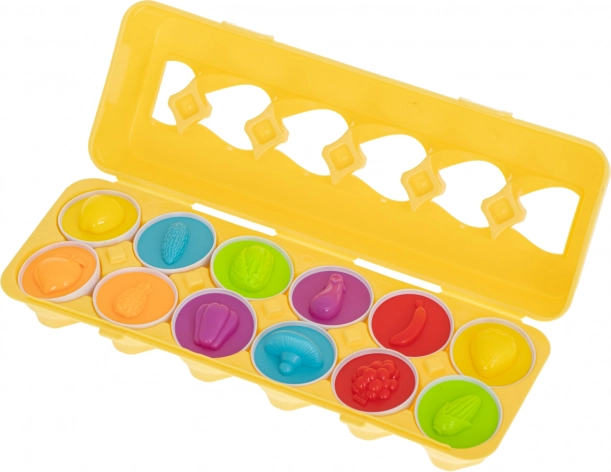 Открийте уникална игра във форма на яйца, която със сигурност ще заинтригува всички малки откриватели. Този креативен комплект съдържа 12 яйца, като всяко крие различна форма и цвят под черупката. Основната задача е да се съчетаят двете половини, за да се образува цяло, което развива логическото мислене и креативността на децата. Играта с яйцата развива не само сръчността, но и способността за разпознаване на форми и цветове. Поради лекото си тегло и компактните размери лесно се взима на път. Перфектна е за запълване на време по време на чакане или дълги пътувания.
