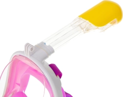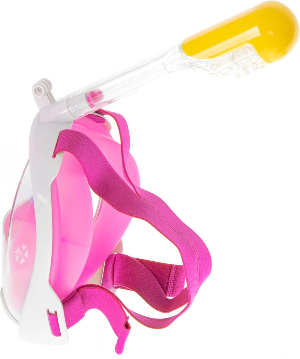Тази пълна маска за шнорхел е проектирана за рекреативна и спортна употреба и осигурява приятното изживяване от наблюдение на подводния свят при плуване по повърхността. Иновативната циркулация на въздуха предотвратява замъгляването и позволява свободно дишане през носа и устата. Широкото зрително поле осигурява панорамен изглед, така че няма да пропуснете нито един детайл.