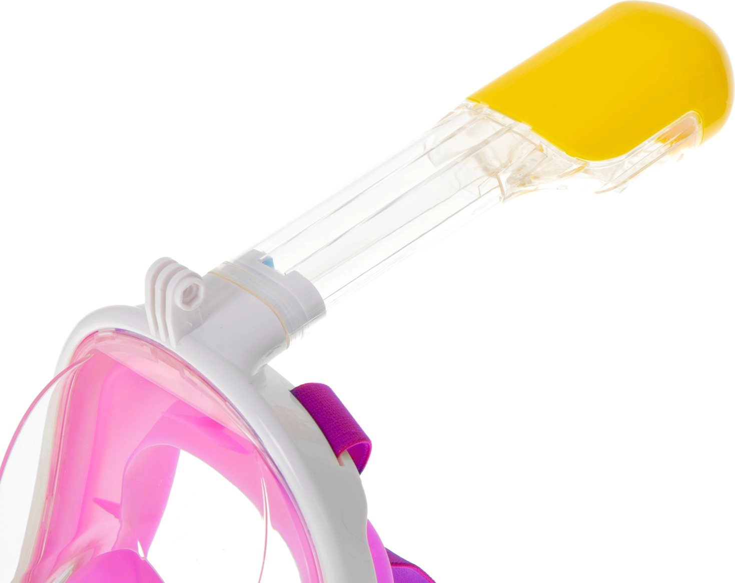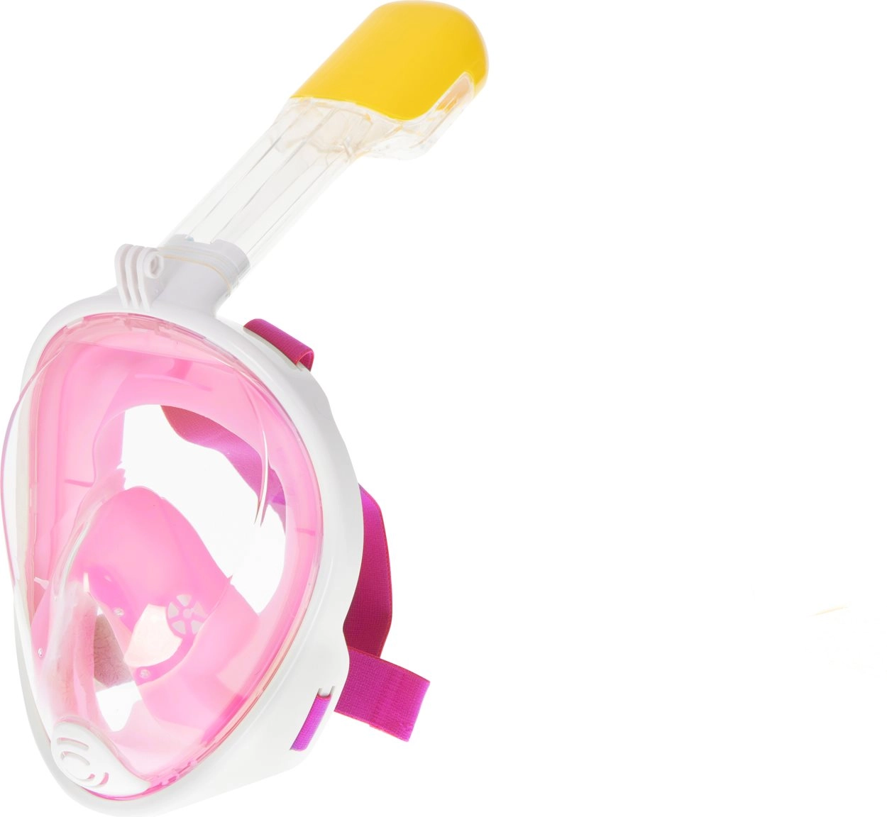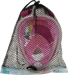 Вграденият шнорхел със суха система „dry-top“ ограничава навлизането на вода отгоре. Маската лесно се адаптира към формата на лицето благодарение на мекото силиконово уплътнение и регулируемите ремъци. В комплекта са включени тапи за уши и държач за екшън камера (напр. GO PRO), за да можете да заснемете най-добрите си моменти под водата. Практичният мрежест сак улеснява носенето и съхранението.