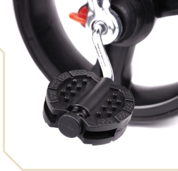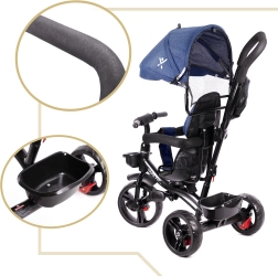 За максимален контрол има въртяща се седалка 360°, която позволява движение с лице към родителя или по посока на пътя. Свободното колело позволява на родителя да поеме задвижването с един превключвател. Безкамерните колела осигуряват комфорт като на помпаеми гуми, но без грижи за налягането и риска от дефект. Налице са тристепенен сгъваем сенник с мрежа, сваляема водеща дръжка с пянообразно покритие и практични аксесоари за съхранение.