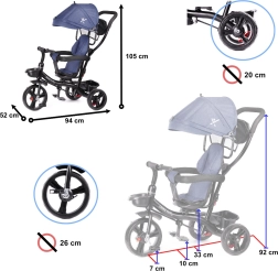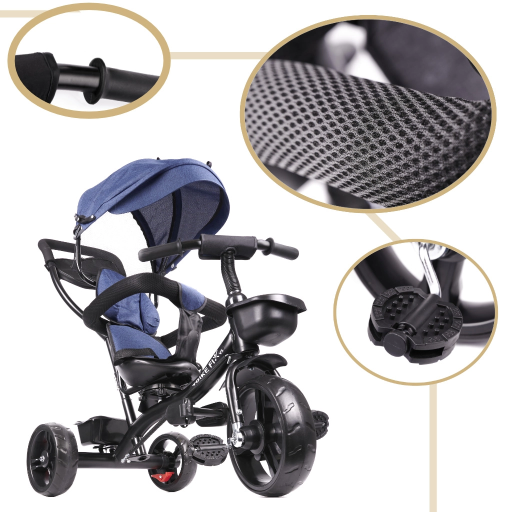 Лека и издръжлива детска триколка TRIKE FIX LITE, идеална за деца от 1 до 5 години. Расте заедно с детето – от режим като количка до първо колело. Предлага въртяща се седалка на 360°, свободен ход, безкамерни гуми, устойчиви на пробиване, сваляема водеща дръжка и богат набор аксесоари за комфорт на родителя и детето.