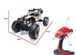 Насладете се на динамично каране с впечатляващ RC модел с дължина 51 cm. Благодарение на 4×4 задвижването, големите колела и гъвкавото шаси, лесно преодолява дупки, камъни и висока трева. Ергономичният пистолетен контролер ляга удобно в ръката и осигурява прецизно управление в терен.
