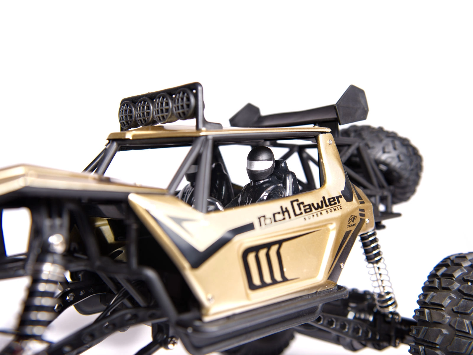 Огромният RC офроуд Rock Crawler в мащаб 1:8 предлага задвижване 4×4, големи гумени гуми 12,5 cm, пружинно окачване и LED осветление за шофиране дори по здрач. Надеждното 2,4GHz управление без смущения позволява едновременно каране на няколко модела, а металната каросерия осигурява издръжливост при офроуд приключения.