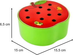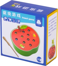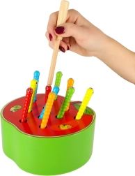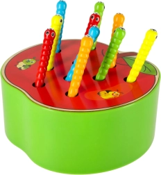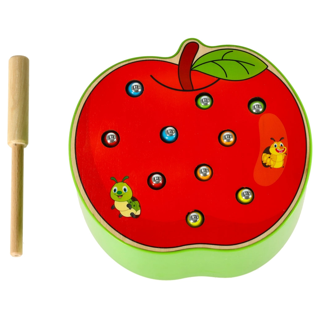 Забавна дървена игра за деца, в която с помощта на магнитна пръчица улавят цветни гъсеници, скрити в ябълката. Подпомага фината моторика, координацията око–ръка, съсредоточаването и търпението. Качествено дървено изпълнение с магнитна пръчица и 10 цветни гъсеници е идеално за смислена игра, вдъхновена от принципите на Монтесори.