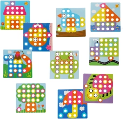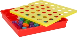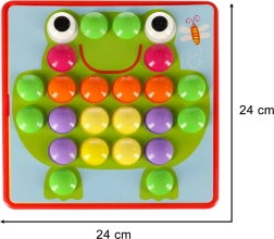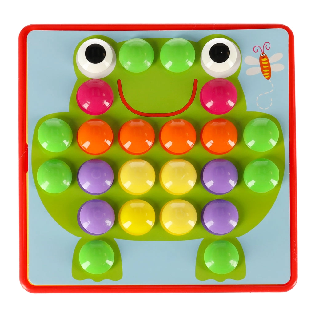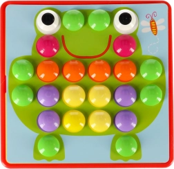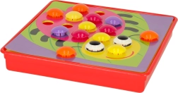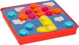 Големите щипки се хващат лесно и децата ги поставят в отворите по цветове – тренират захвата, координацията око–ръка и вниманието. Идеална първа мозайка за предучилищна възраст.