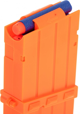 В комплекта има сваляем прицел за по-прецизно прицелване и пълнител за 12 дунапрени стрели, който се изважда бързо с бутон отстрани. В кутията ще намерите 20 стрели (10 класически и 10 с вендуза), за да започнете стрелбата веднага след разопаковане.