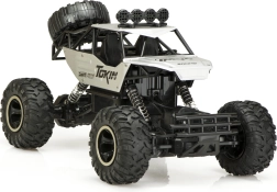 Мощен офроуд RC модел в мащаб 1:12 с постоянно задвижване 4x4, метална конструкция и независимо пружинно окачване, който се справя с каменисти пътеки, пясък и трева. Два мотора на мостовете осигуряват силна тяга и сцепление, големите колела плавно преодоляват неравности, а 2,4 GHz контролер предлага стабилен обхват до 50 м.