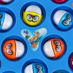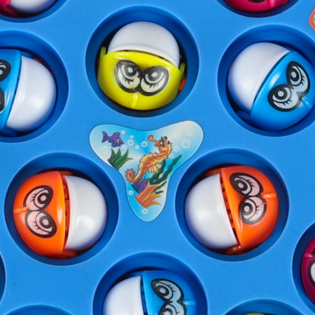 Правилата са прости: разположете рибките в отворите, всеки взема въдица и печели този, който улови най-много. Подвижните чашки за улова улесняват броенето на точките и прибирането след игра.