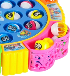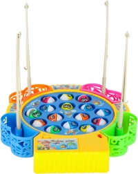 Включете въртящото се езерце, пригответе въдиците и започнете да ловите! Докато се върти, рибките последователно отварят и затварят устички, затова са нужни прецизно време и сръчност. Играта е идеална за 1–4 играчи и благодарение на веселата музика и ярките цветове децата ще я заобичат веднага.