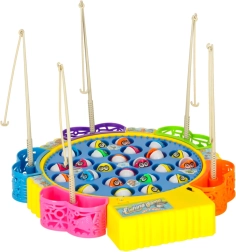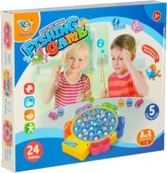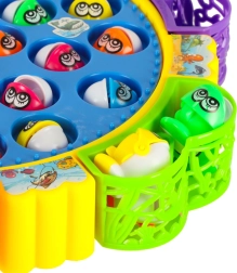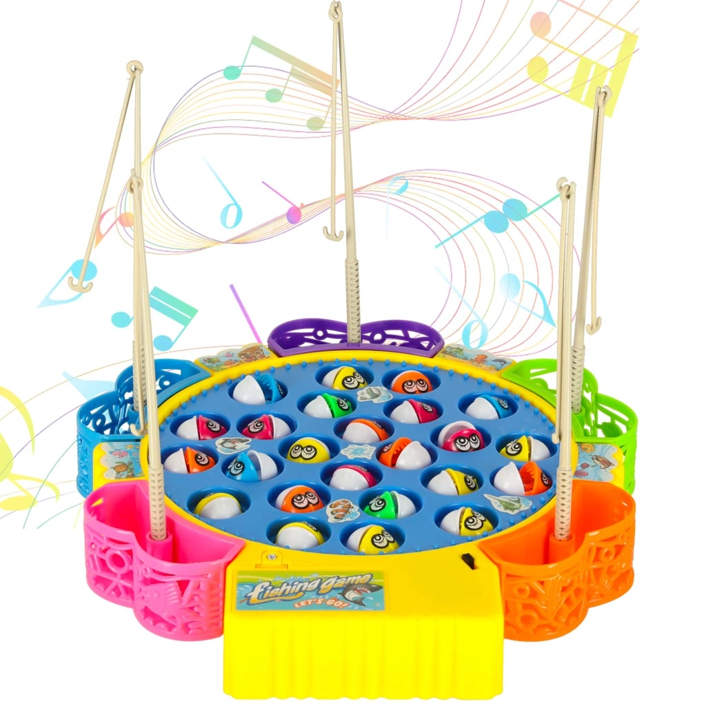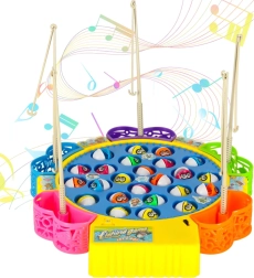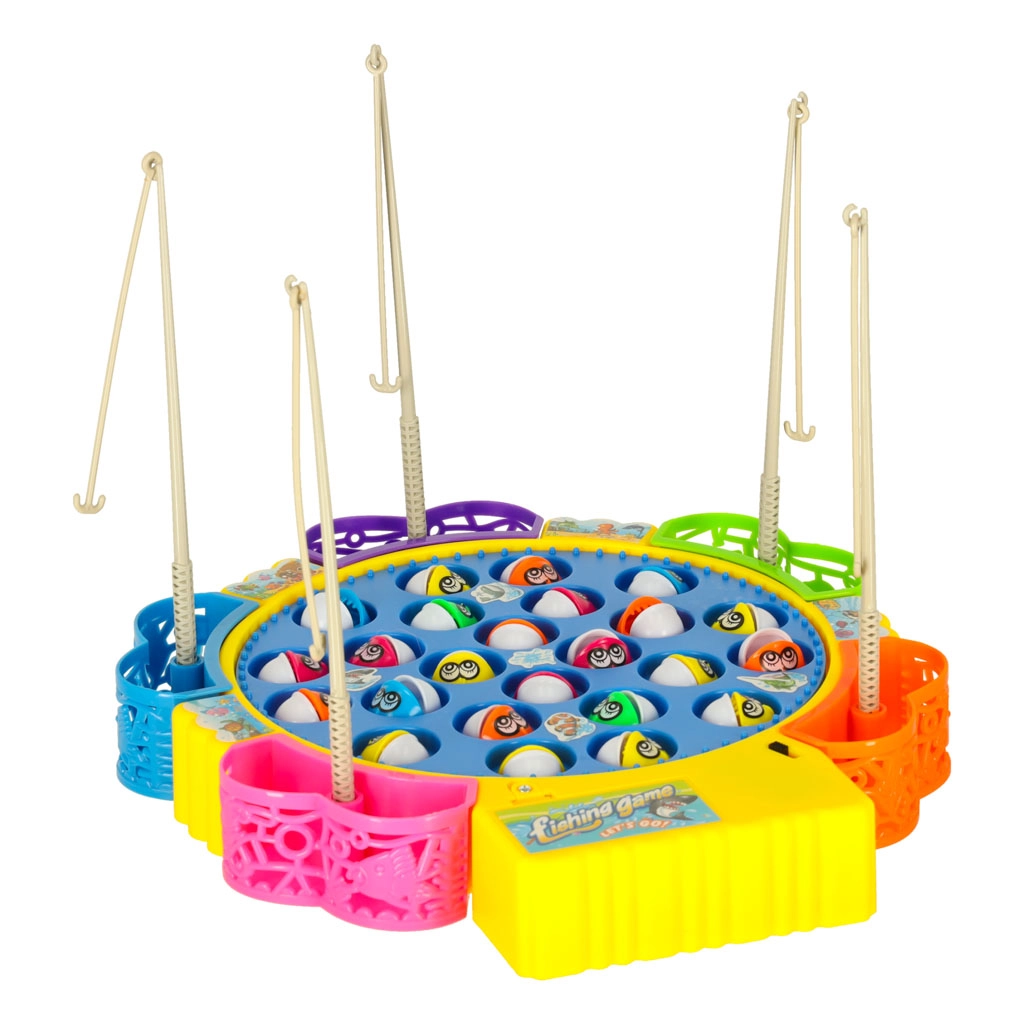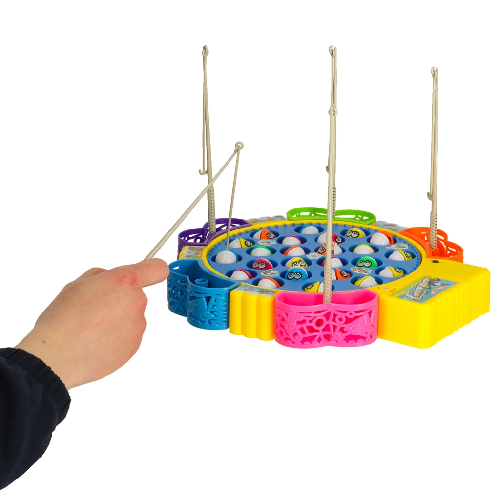 Забавна семейна игра за 1–5 играчи, в която ловите рибки в въртящо се езерце. Мотор задвижва въртящата се платформа, рибките отварят и затварят устички, а играта свири мелодия. В комплекта има 24 рибки, 5 въдички и цветна основа с кошнички. Отлично развива рефлексите, координацията око–ръка и концентрацията.