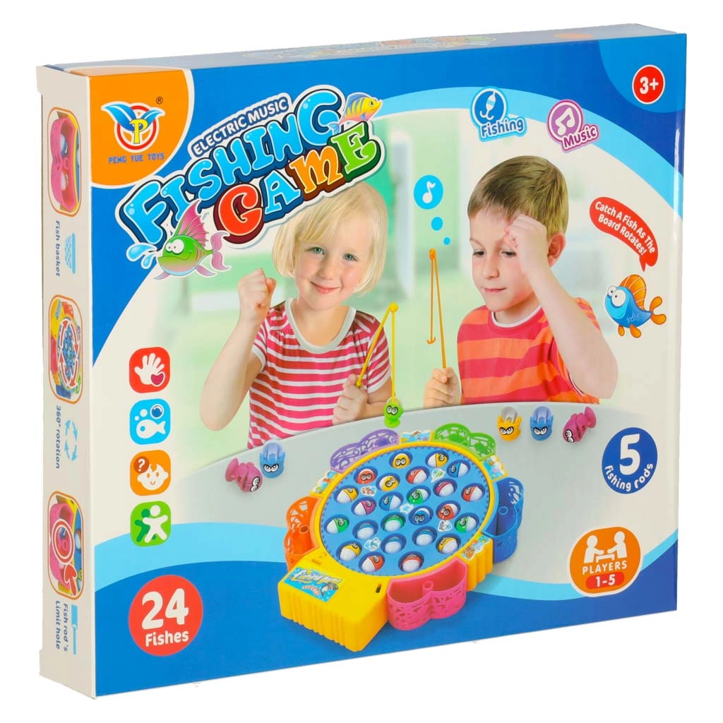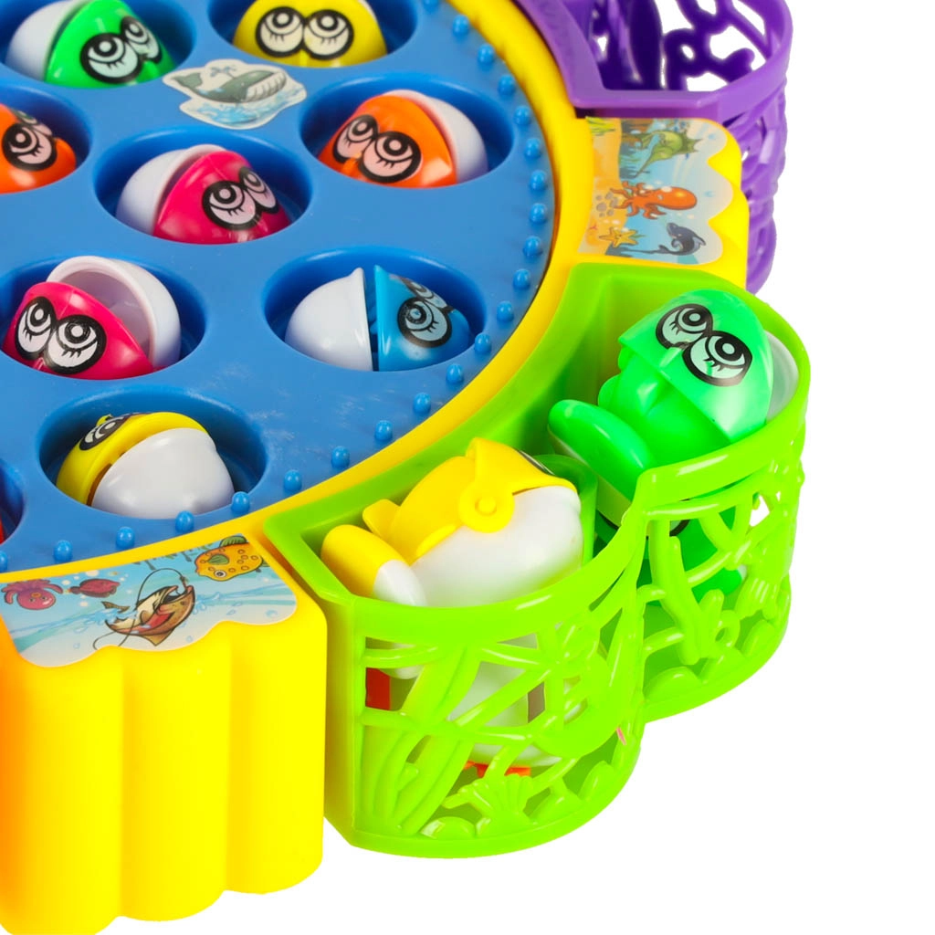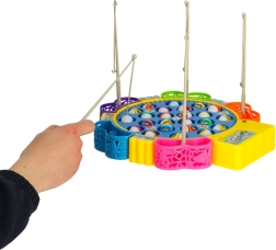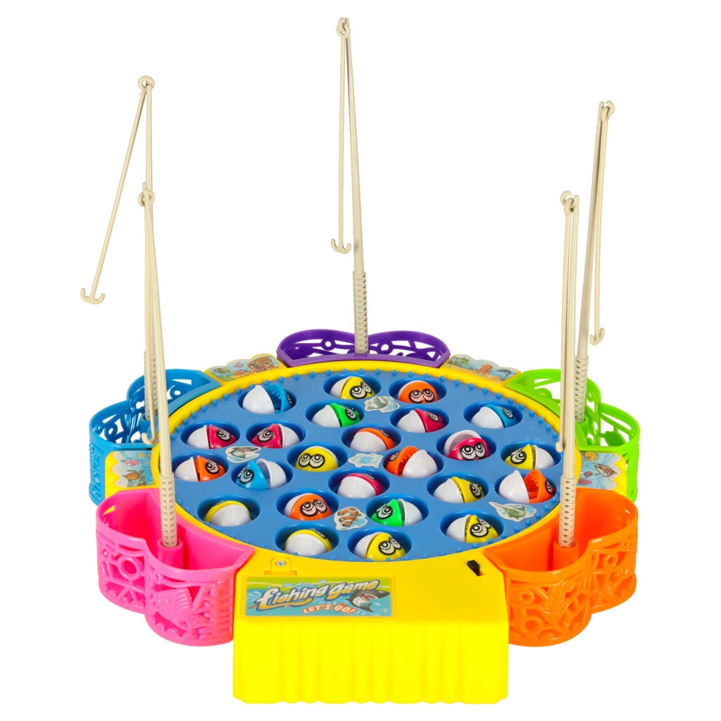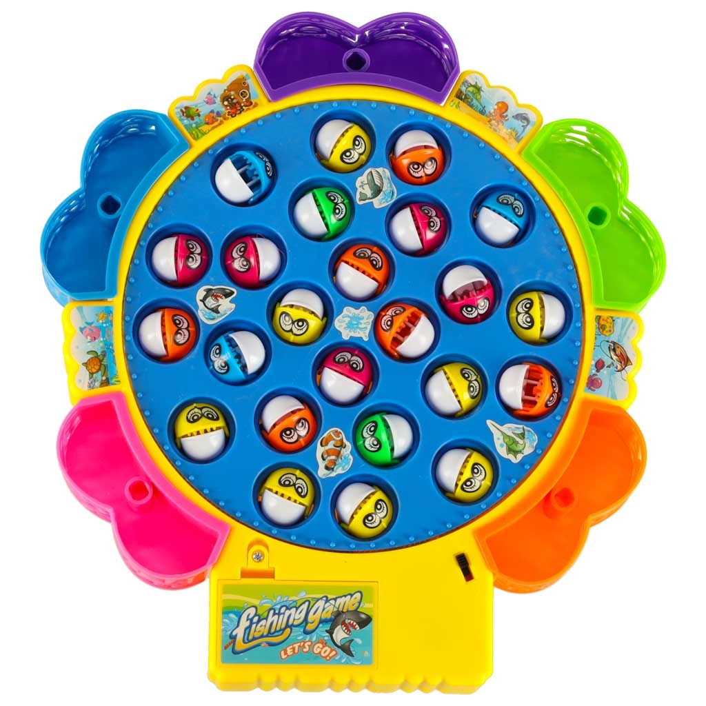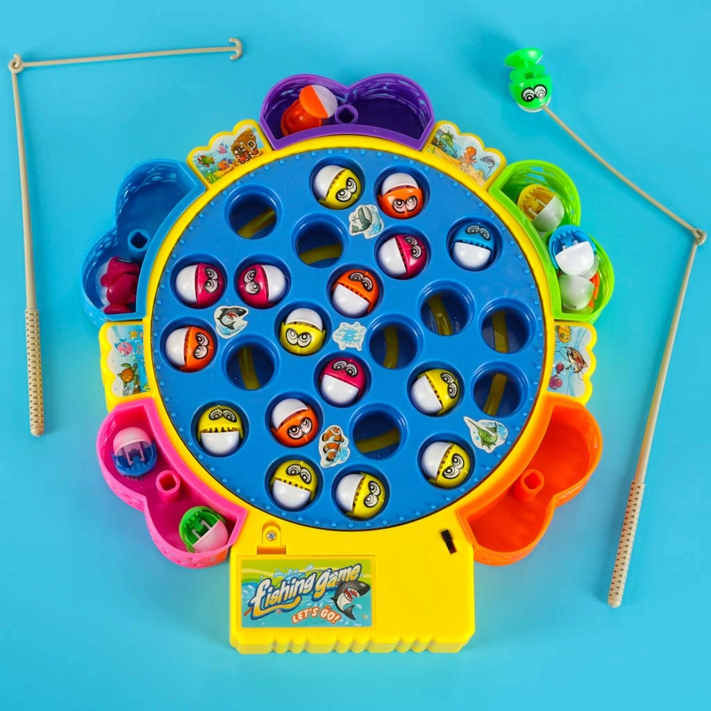Веселата електрическа игра за ловене на рибки носи напрежение и смях за цялото семейство. Кръглото езерце с бавна ротация вкарва рибките в движение, които отварят и затварят устички – правилното таймиране ще ви направи шампион по риболов. Благодарение на звуковите ефекти атмосферата е още по-забавна.