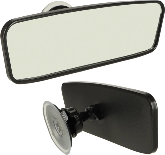 Практично широкоъгълно огледало за обратно виждане с вендуза за лесен монтаж на предното стъкло, осигурява голям и ясен образ и повишава безопасността и комфорта при шофиране. Благодарение на здравата въртяща се вендуза лесно го настройвате под идеалния ъгъл, огледалото е подсилено за по-висока издръжливост и предлага дълъг живот.