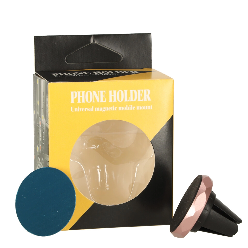 Компактна магнитна стойка за телефон за решетката на вентилацията с мощни неодимови магнити за сигурно закрепване по време на шофиране. Стабилен клипс за въздуховода, управление с една ръка, въртящ се за идеален ъгъл и минималистичен дизайн в елегантно розово.