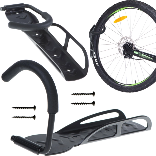 Стойката е подходяща за всички типове велосипеди, независимо от размера на колелата. Монтажът е лесен и бърз — достатъчно е да я закрепите към стената с винтове и дюбели, които са включени в комплекта. Здрава конструкция и устойчиви материали гарантират, че колелото ще остане надеждно на мястото си.