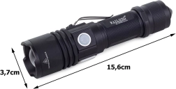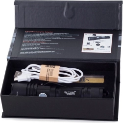 За светлинната мощ отговаря диодът CREE XM‑L T6 с живот до 100 000 часа. Плавният зуум с леща позволява превключване от тесен, далечен лъч с далекобойност до 400 м към широко осветяване на околността. Налични са три режима (100 %, 50 %, стробоскоп), а същите режими предлага и практичната странична светлина. Захранването от клетка 18650 с зареждане през USB улеснява работата у дома и на терен, налични са щипка за закрепване и елегантна подаръчна опаковка.