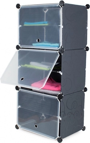 С този модулен рафт можете винаги да държите обувките и аксесоарите си подредени и прегледни. Шкафът се състои от три сегмента, лек е и същевременно стабилен. Неговата модулна конструкция позволява лесен монтаж и гъвкавост при подреждането според вашите нужди. Металните рамки се свързват лесно с помощта на ABS съединителни елементи.