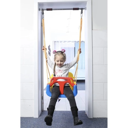 Монтажът е бърз и лесен – окачвате люлката на балкона, на рамката на вратата (напр. на разпънка) или на градинска конструкция. Регулируемите на височина найлонови въжета позволяват прецизно нагласяне. Устойчивите пластмасови части от PP и металните елементи осигуряват дълъг живот за домашна употреба както в интериор, така и екстериор.