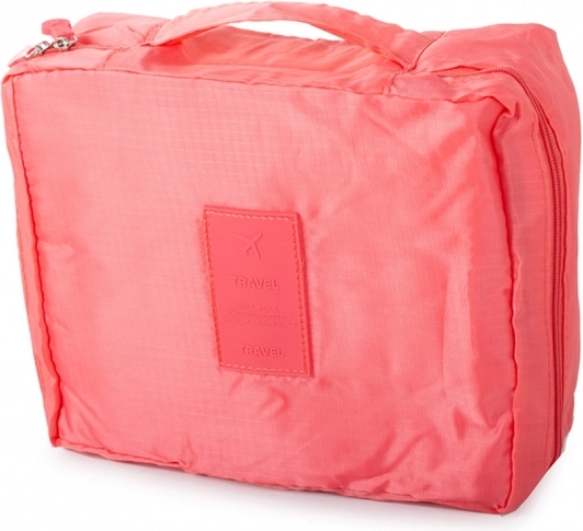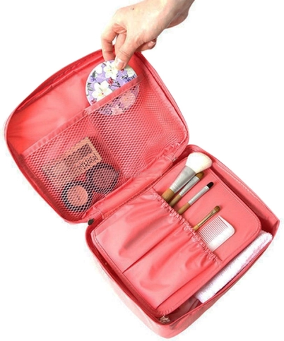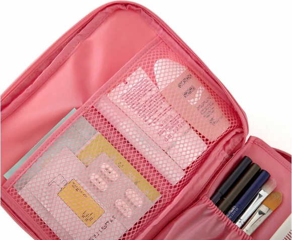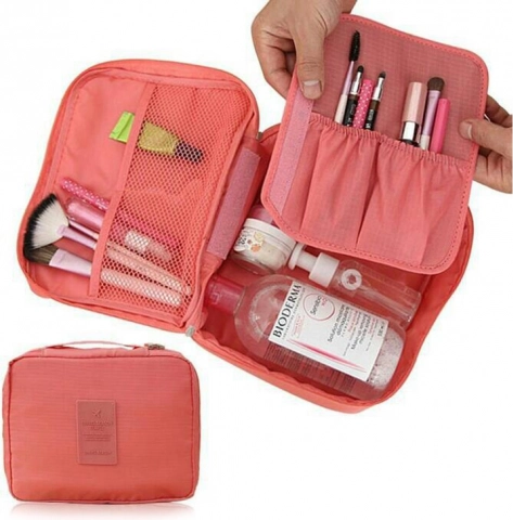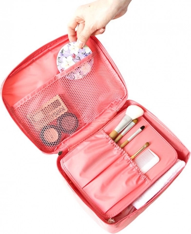 Козметичната чанта има и удобна дръжка, която улеснява пренасянето.