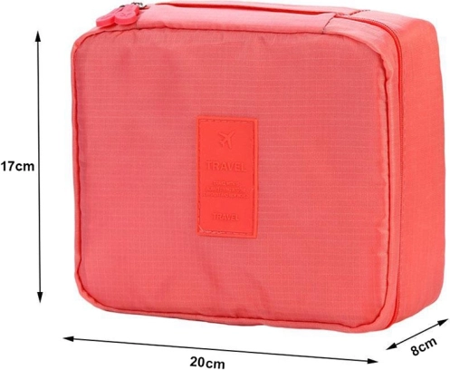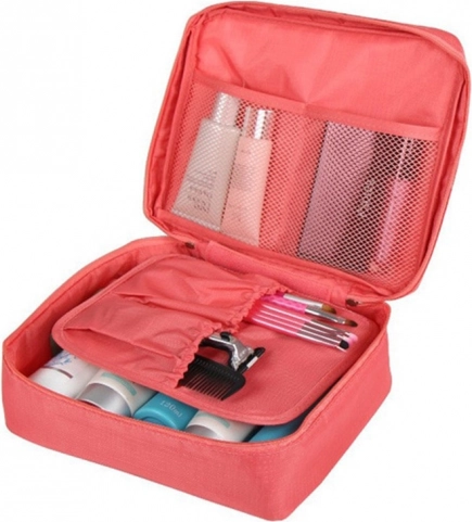 Тази практична козметична чанта предлага просторно основно отделение заедно с два мрежести джоба. Разделителят е със самозалепваща лента (велкро) и позволява увеличаване на капацитета. Идеална за пътуване, тъй като заема минимално място.