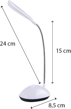 Настолната LED лампа е оборудвана с 4 мощни LED диода, които осигуряват интензивна светлина, идеална за четене или работа. Този продукт е отличен като допълнение за намаляване на напрежението в очите при работа пред компютърен екран. Благодарение на бялото, гладко покритие се почиства лесно.