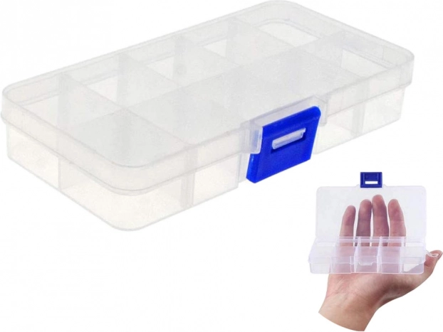 Практичен органайзер с възможност за разширяване до 10 отделения поддържа ред при съхранение на винтове, лекарства, бижута или мъниста. Благодарение на прозрачния капак съдържанието е винаги под контрол, а здравата щипка предотвратява неволно отваряне по време на пренасяне.
