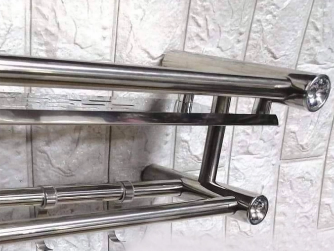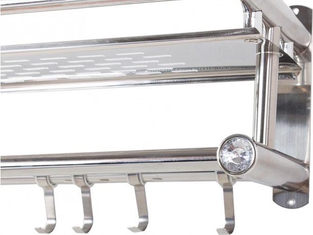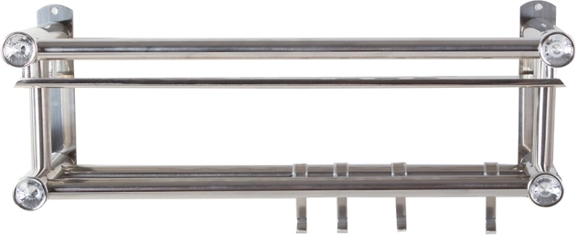 Лекият алуминий осигурява устойчивост на влага и лесна поддръжка. Монтажът е прост и стабилен, необходимото монтажно оборудване е включено в комплекта. Декоративните завършеци с кристални елементи придават на рафта фин чар.