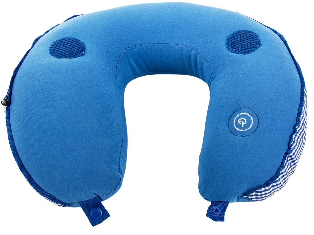 Възглавницата е изработена от приятен текстилен материал и е пълнена с фин полистирен за меко, но стабилно подпиране. Практичното закопчаване с тик-так копче държи възглавницата на място, а компактните размери гарантират, че не заема много място в багажа.
