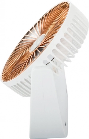 Компактният безжичен настолен вентилатор осигурява приятно освежаване у дома, в офиса и в движение. Предлага тиха работа, 3 скорости, презареждаема Li‑ion батерия и USB зареждане. Стилен бяло‑златен дизайн и накланяща се конструкция за прецизно насочване на въздушния поток.