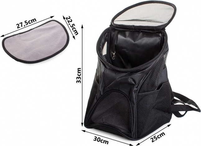 Раницата се отваря отгоре чрез цип и съдържа подвижна вложка за лесна поддръжка. Вградените мрежести елементи осигуряват добра циркулация на въздуха, което допринася за комфорта на вашия домашен любимец.