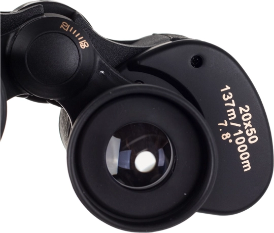 Биноклите с 20x увеличение и обектив с диаметър 50 mm са перфектни за наблюдение на пейзажи, животни и спортни събития. Изработени са от висококачествени материали и благодарение на гумираното, противоплъзгащо покритие осигуряват сигурен захват. Разполагат с диоптрична корекция в десния окуляр и централно фокусиране на моста между тръбите.