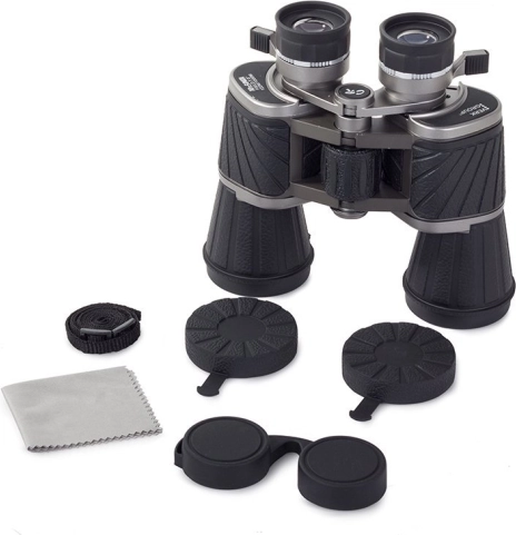 Бинокълът лесно се свързва със стативен адаптер за продължително наблюдение без вибрации. В комплекта ще намерите също защитни капачки за лещите, почистваща кърпичка и удобен калъф за пренасяне.