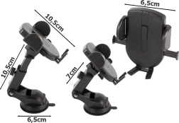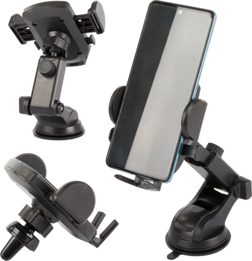 Автомобилната стойка за телефон е проектирана да осигури безопасна и комфортна употреба на вашето мобилно устройство по време на шофиране. Монтира се лесно на предното стъкло или таблото на автомобила, а благодарение на системата от регулируеми рамена стойката е подходяща за повечето телефони и GPS устройства.