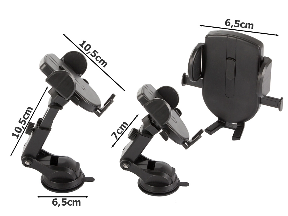 Универсална автомобилна стойка с здрава вакуумна вендуза за безопасно поставяне на предното стъкло или таблото. Нейният лесен монтаж и регулируем ъгъл осигуряват максимален комфорт при използване.