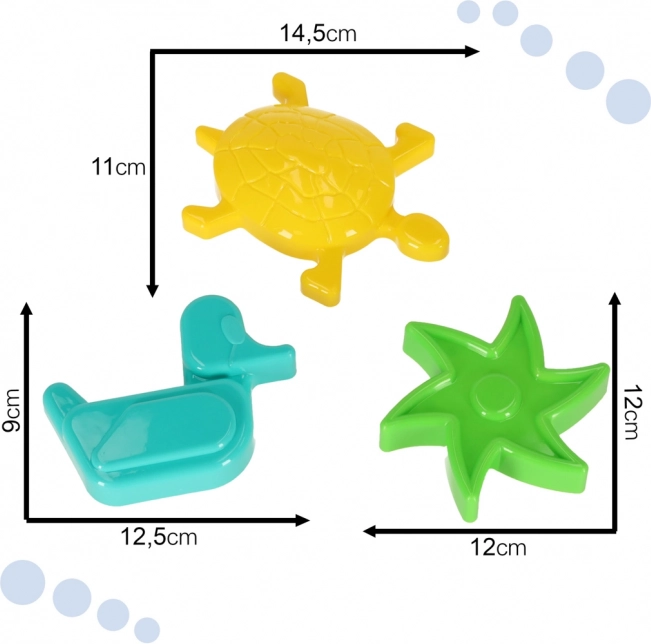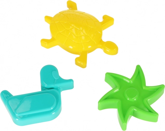 Насладете се на креативна игра в пясъка и във водата. Комплектът предлага многофункционална лодка, която лесно се разглобява на три части и може да се използва като голяма форма или да се остави да плува по повърхността. Трите ярко оцветени формички – звезда, пате и костенурка – помагат на децата да създават красиви форми и развиват въображението и фината моторика.