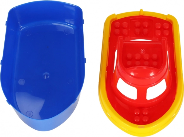 Разглобяемата на три части лодка служи като голяма форма за пясък и като плаваща водна играчка – идеална за плажа, басейна и ваната.