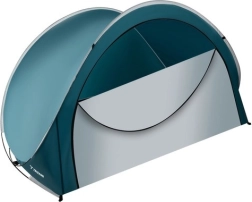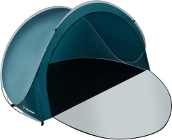 Насладете се на удобство и сянка навсякъде край водата. Плажната палатка с полуотворена конструкция комбинира предимствата на слънцезащитник и ветрозащитен параван, но заема минимално място в багажа. Разгъване за 2 секунди е по силите на всеки – след изваждане от калъфа палатката се изправя сама, а фиксирането става с колчета и въженца.