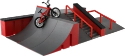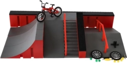 - Пълен комплект: рампа, стълби с рейлова тръба, мини скейтборд за пръсти и мини BMX колело