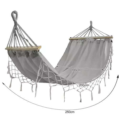 Разпънките с дължина 80 cm държат повърхността на хамака разперена като легло – идеално за четене, слънчеви бани и релакс.