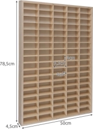 Подредете колекцията от колички стилно и прегледно. Тази качествена етажерка от шперплат предлага до 90 отделения за мачбокс и мини модели, лесен монтаж на стена и възможност за свободно регулиране на размерите на отделенията. Естественият дървесен вид в декор бор прекрасно допълва детската стая и помага да се поддържа ред всеки ден.