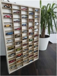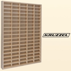 Дървената етажерка KRUZZEL е умно и дизайнерско решение за всички малки и големи колекционери. Благодарение на 90-те самостоятелни отделения ще имате всеки модел винаги пред очите и под ръка. Елегантното естествено изпълнение от шперплат пасва на повечето интериори и същевременно служи като стилна декорация за детската стая.
